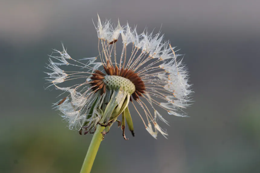 En dan, als je net gewend bent aan dat zonnige geel, verandert hij ineens in een pluizenbol. Tijd voor fase twee. Elk pluisje een zaadje, elk zaadje een mini-avonturier met een perfect ontworpen parachute. Eén zuchtje wind — of een passerende wandelaar of hond — en de volgende generatie gaat op pad.